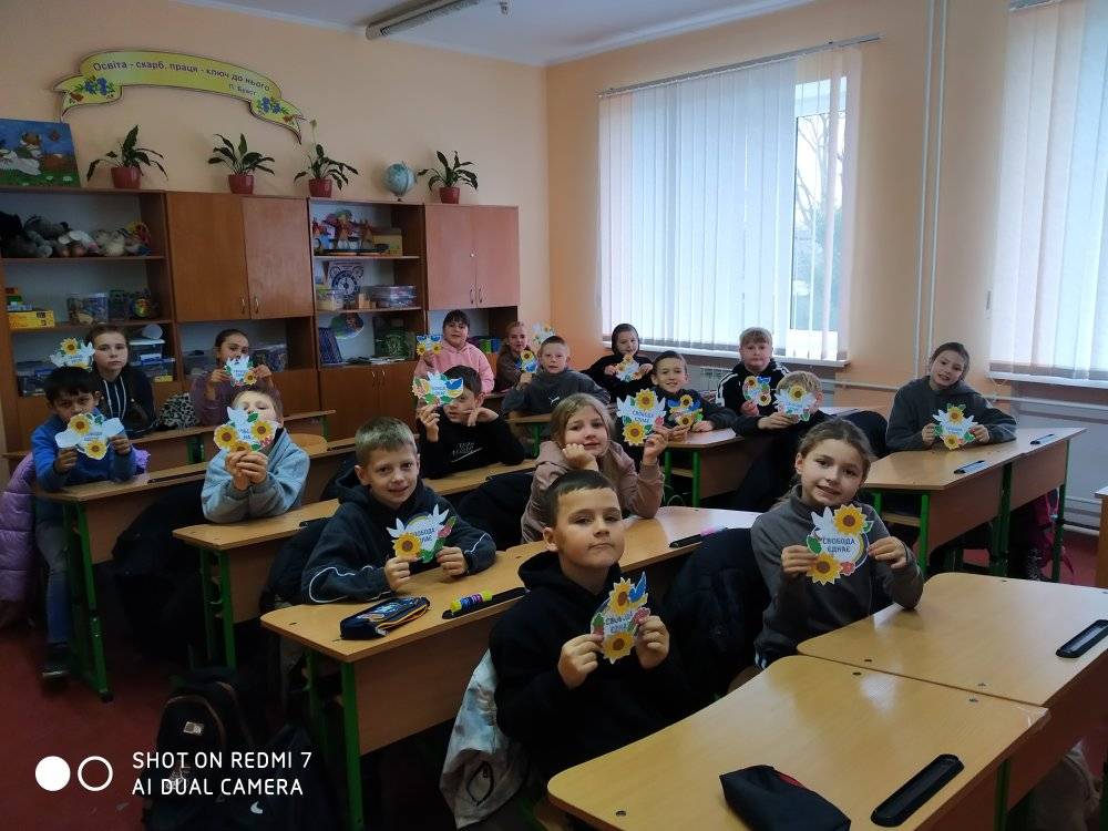 Класний керівник 4 класу Свистун Наталія Леонідівна провела з дітьми свого класу бесіду "День Гідності та Свободи: історія свята". Учні виготовили поробки " Свобода єднає".